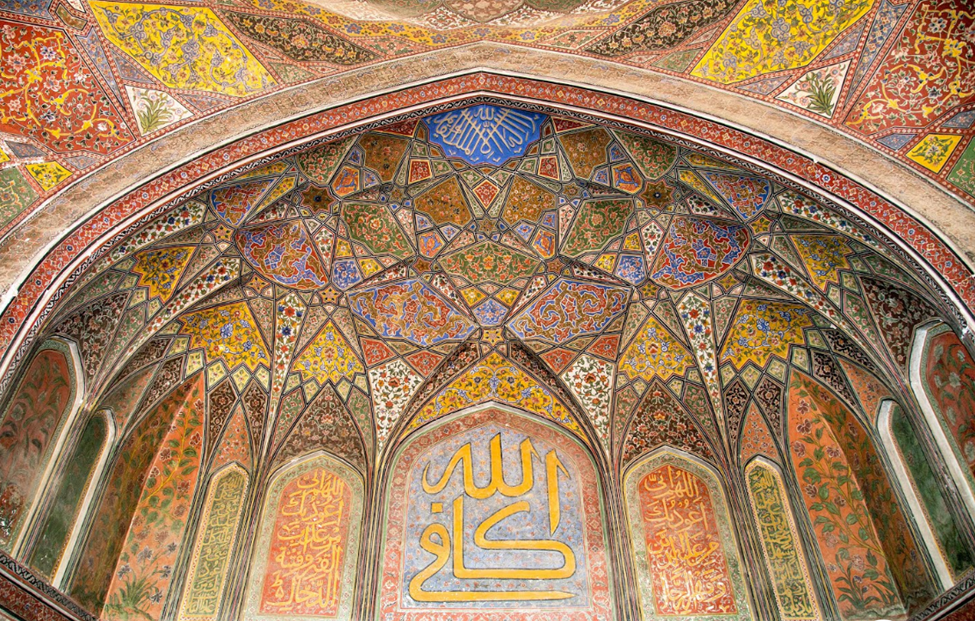 Masjid Wazir Khan c. 1634-1641 is renowned for its intricate glazed tile work. It is considered one of the Mughal Era subcontinent architecture’s most embellished and detailed artworks.